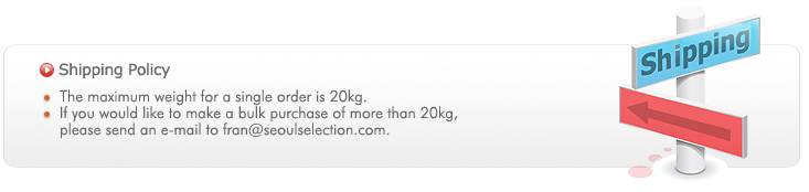 Airmail I Smaller Parcel Post Note: Not trackable. Since this is a form of general mail, deliveries do not receive a tracking number. While delivery costs are relatively inexpensive and customs passage is easier, the security of the delivery is somewhat lower. Packaging methods are applied that allow for opening according to regulations. Please be aware that Seoul Selection cannot be held responsible for items ordered that are lost during delivery. Only applies to packages weighing less than 2 kg. For boxes, no one side can exceed 60 cm in length, and total dimensions of length, width and height together cannot exceed 90 cm.