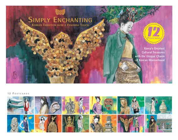 Through the incomparable pen of illustrator Yoon Moon Young, this postcard series brings together Korea’s greatest cultural treasures with Korean womanhood’s unique feminine charm.