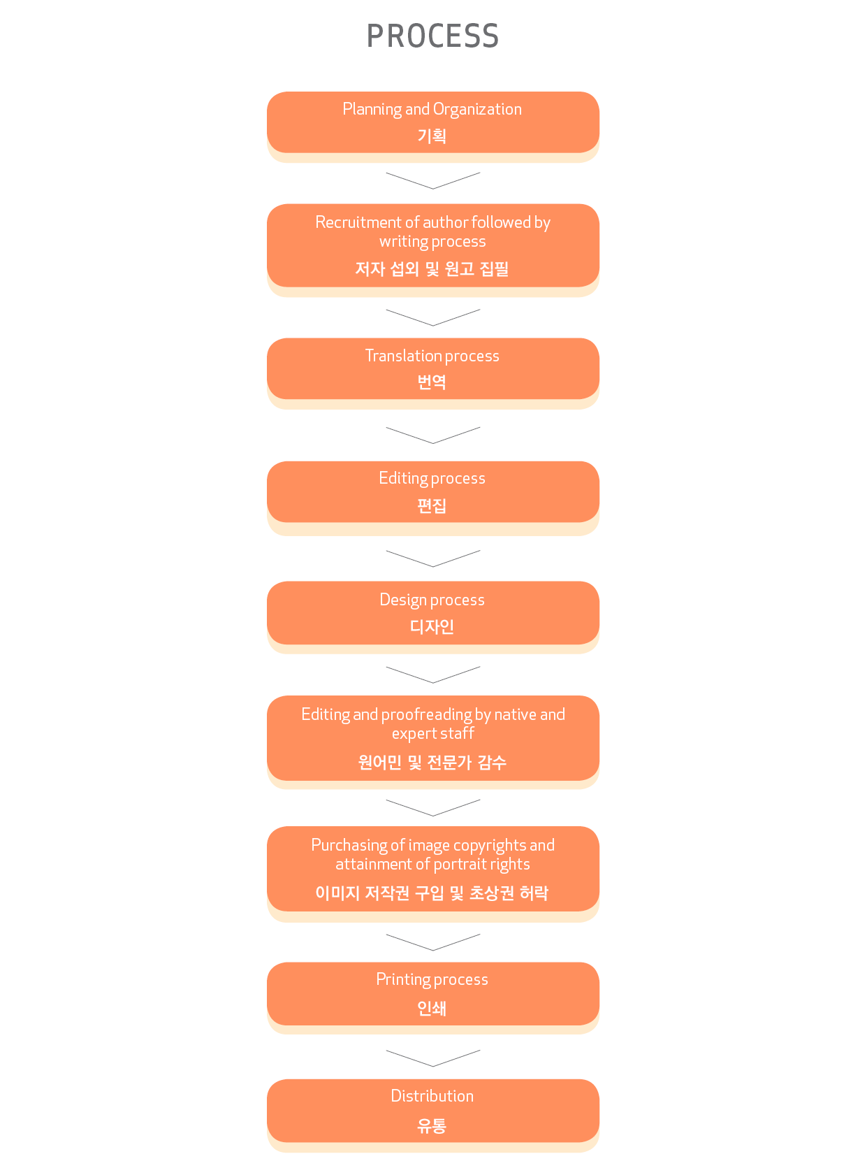 클라이언트의 생각을 읽는 공감 능력, 이야기와 이미지가 공명하는 크리에이티브 디자인, 세련된 번역을 바탕으로 다국어 출판물의 출판과 유통까지 원스탑 서비스를 제공합니다.